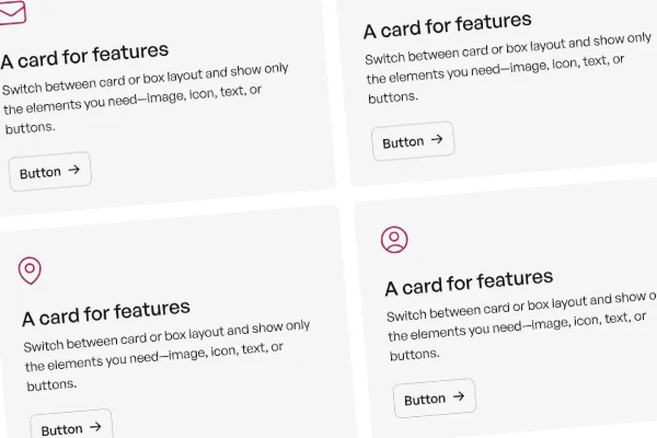 Reusable card layouts for content, services, features, and CMS-driven sections.