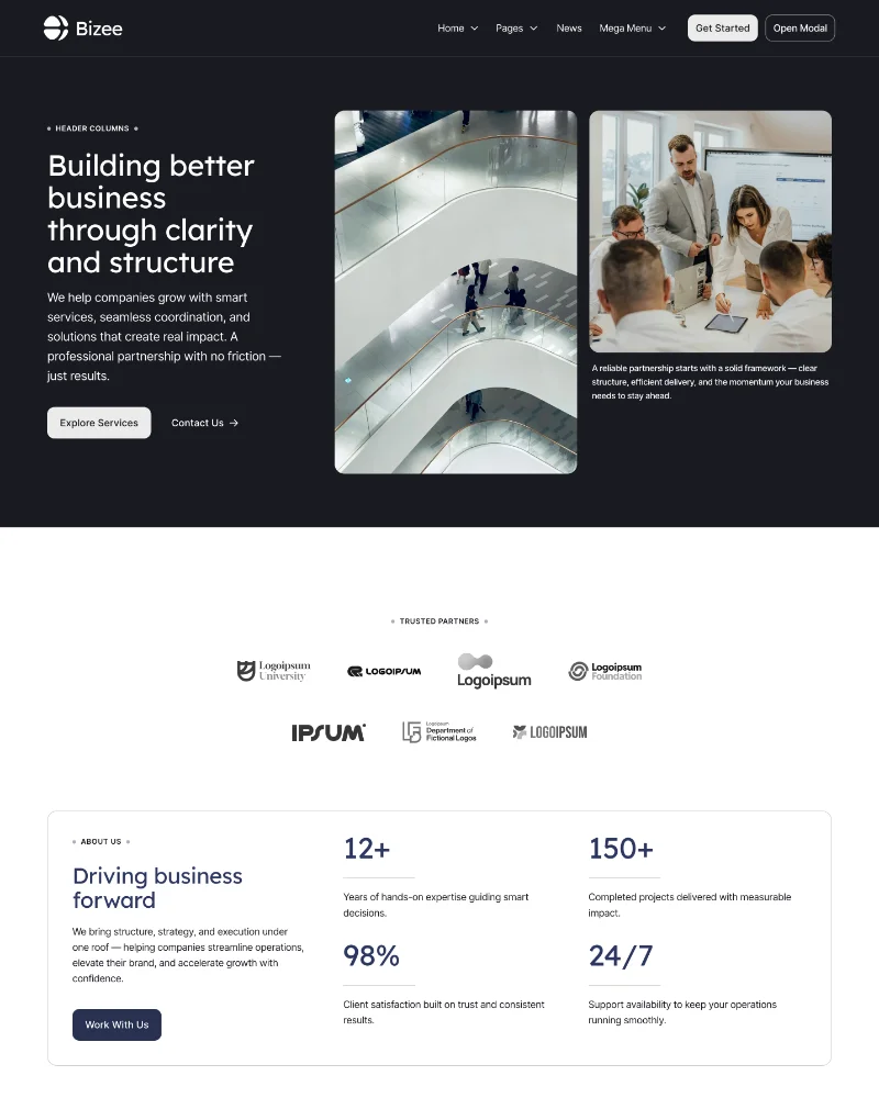 Consistent layout patterns that keep pages clean and structured. Add new sections or rearrange content knowing everything will align perfectly as your site grows.