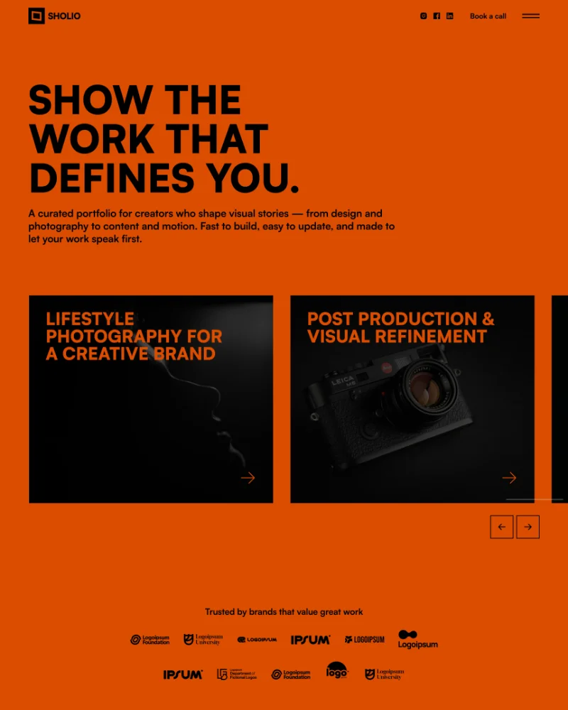 A bold portfolio template for creatives, featuring strong typography, dark mode, and expressive layouts that put your work first.