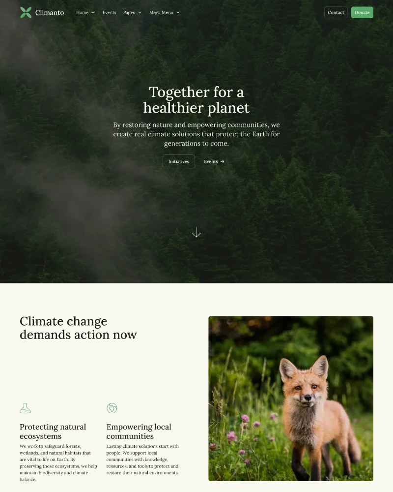 A modern template for environmental and community organizations, designed with powerful hero sections and thoughtful visual details.