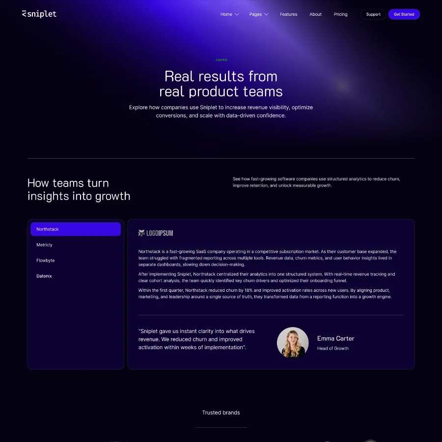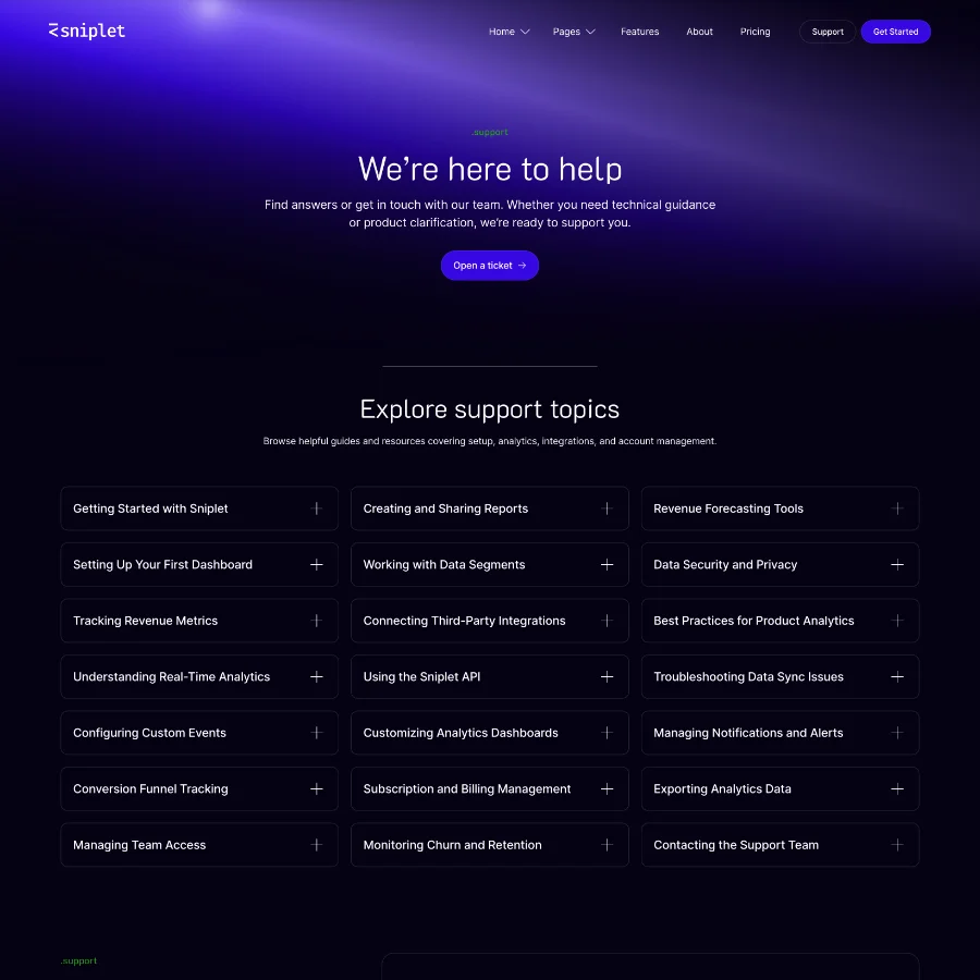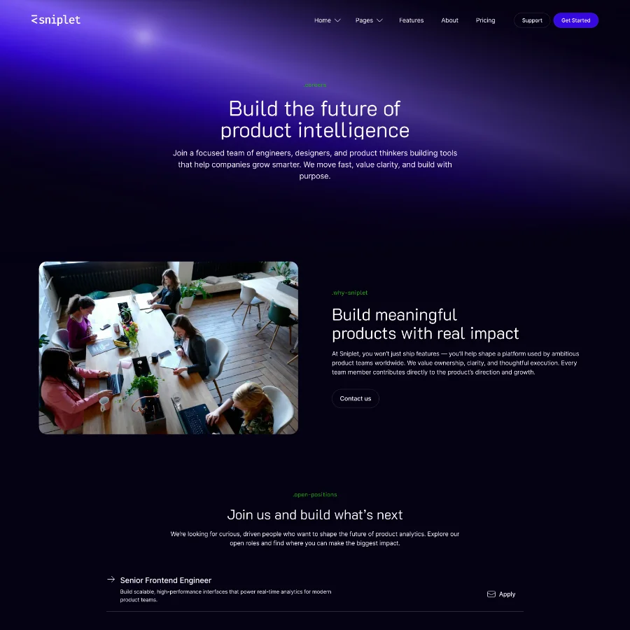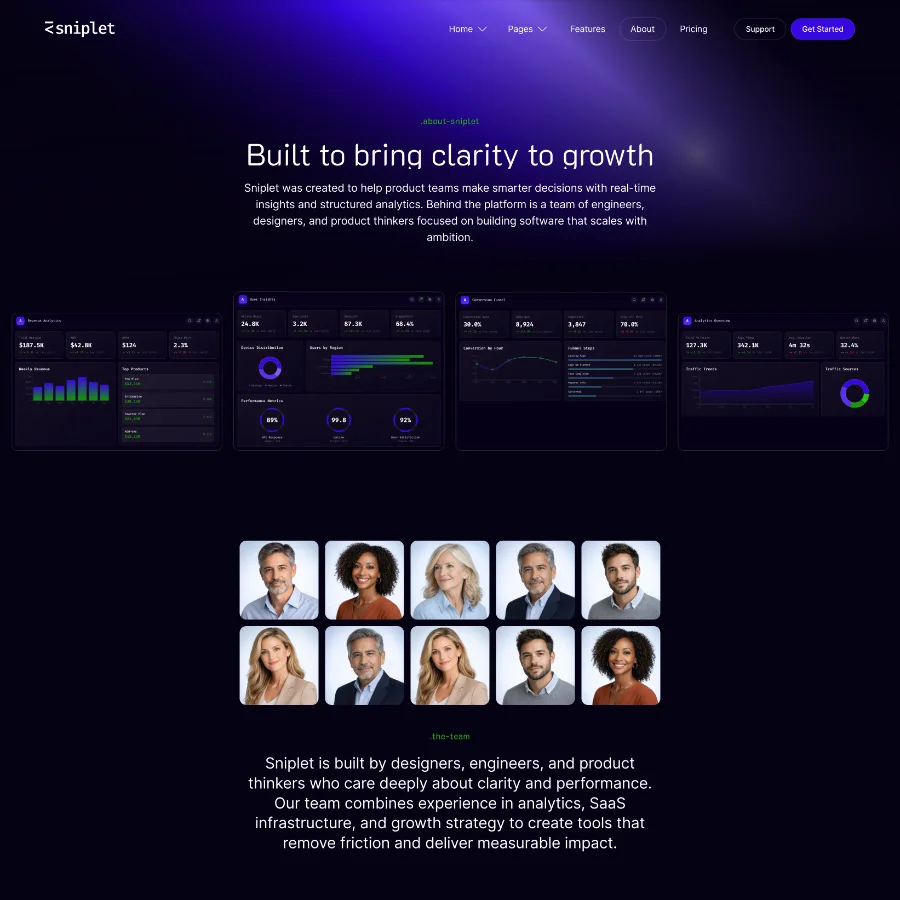 Whether you’re launching a new SaaS platform, presenting a developer tool, or building a product marketing site, Sniplet provides a flexible starting point for creating a modern, data-driven software website.